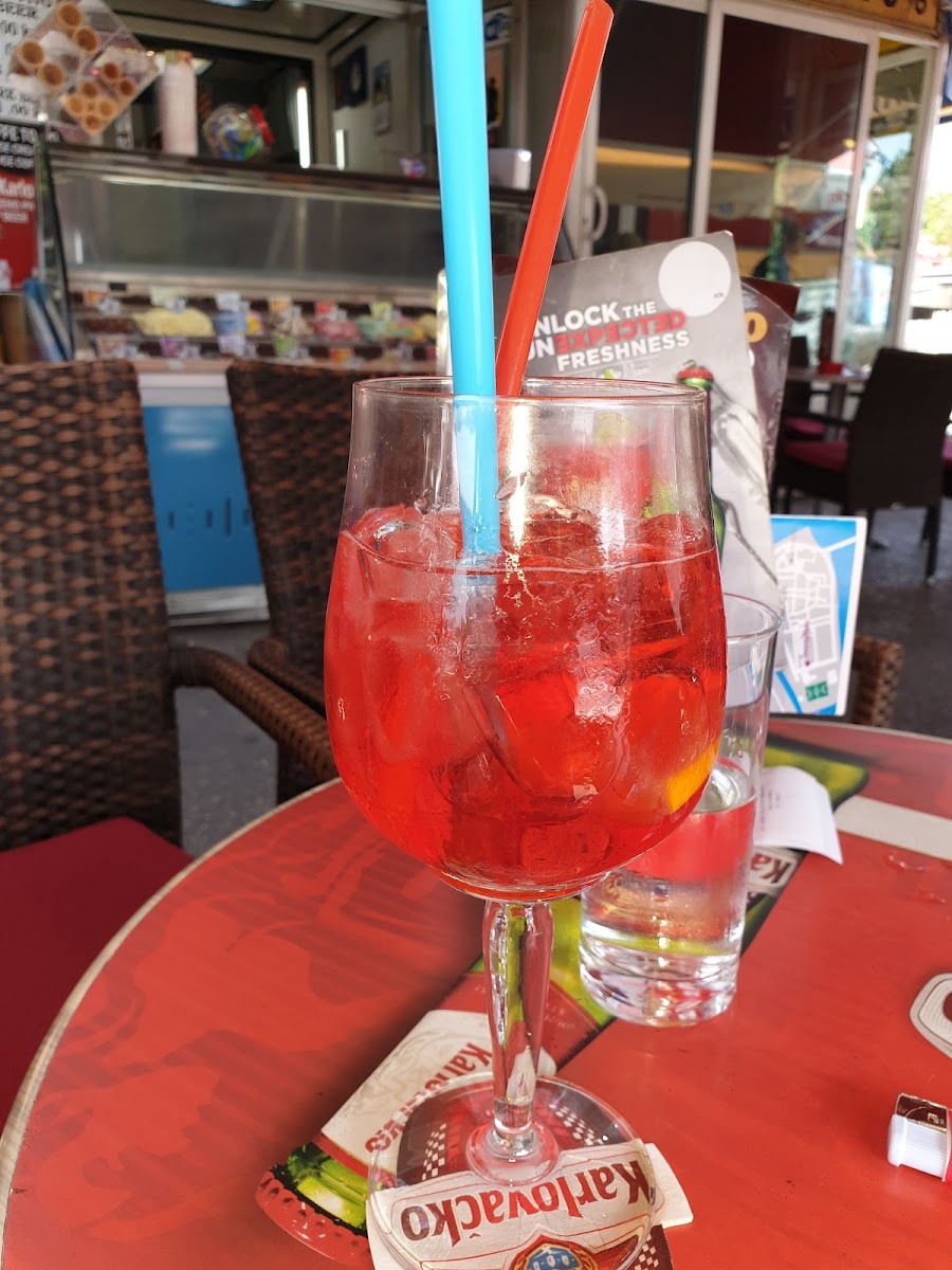 The menu keeps things simple but satisfying, focusing on drinks that suit the cafe’s laid-back personality. Aperol is a clear highlight here, bright and refreshing, perfect for warm afternoons when you want something light yet flavorful. It pairs naturally with the relaxed mood of the place. For those who prefer something classic, Pivo is another popular choice, served cold and enjoyed slowly, especially by groups settling in for a longer stay.